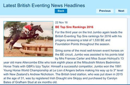 Click the button below for a report from British Eventing Limited showing Jumbo's progeny.